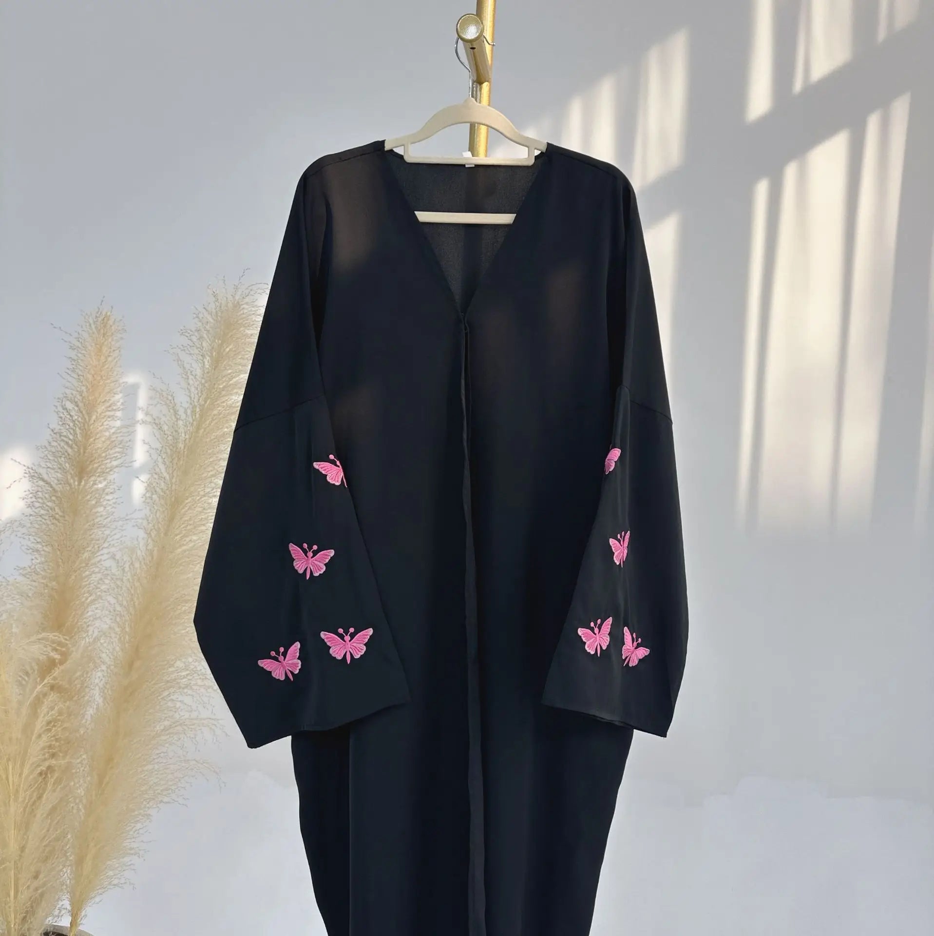 Abaya Kimono Noire Brodée Papillons – Tenue Modeste Élégante
